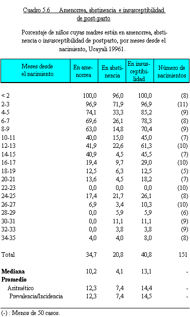 meses, desde el nacimiento del último hijo. El Cuadro 5.6