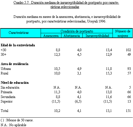 amenorrea, la abstinencia e insusceptibilidad postparto, por características