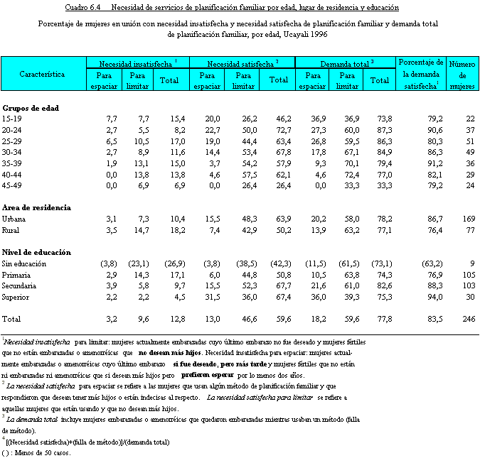 35-39) y 14 por ciento (mujeres 40-44). En cambio, la necesidad