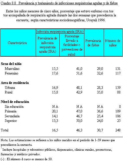 En el Cuadro 8.8 se presenta información