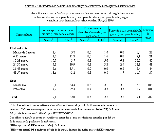 con la esperada para su edad y sexo. Los niveles de desnutrición
