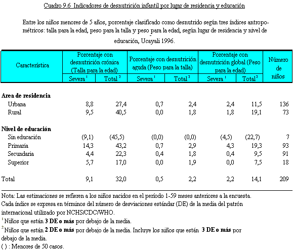 edad, sexo y en el Cuadro 9.6 por lugar de residencia, nivel de