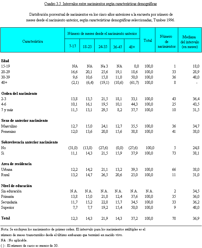 transcurrido entre los nacimientos (espaciamiento de los hijos).