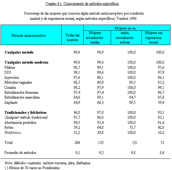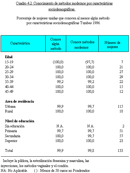 de planificación familiar, siendo los métodos modernos