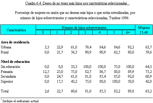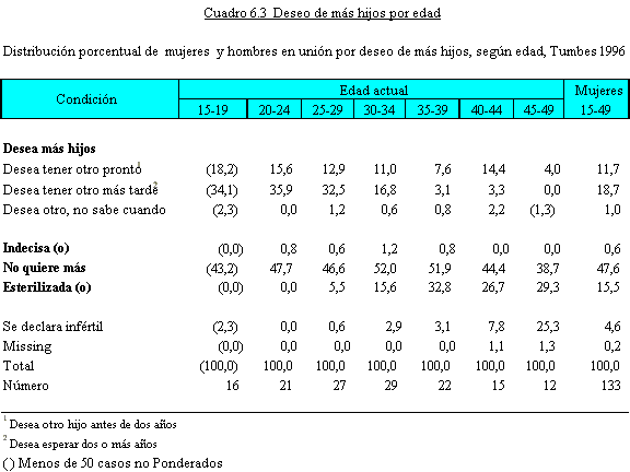 de las mujeres (63 por ciento) no desean tener más hijos.