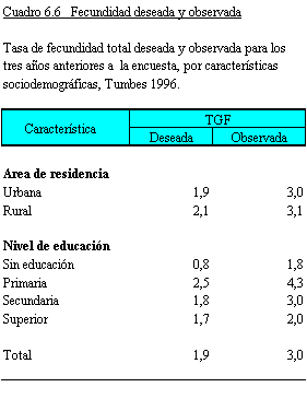 no planeados sobre el nivel de la fecundidad, se obtiene una tasa