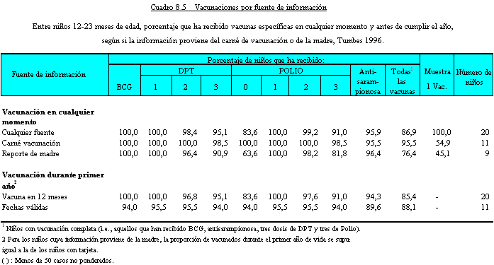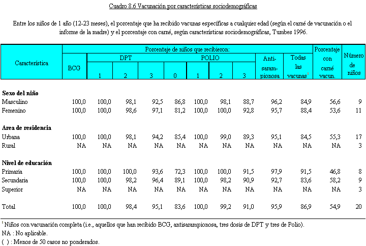 100 a 99 por ciento en la DPT Polio, respectivamente con datos