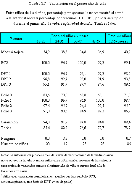 de 12 a 23 meses han sido vacunados contra la BCG y un 96 por