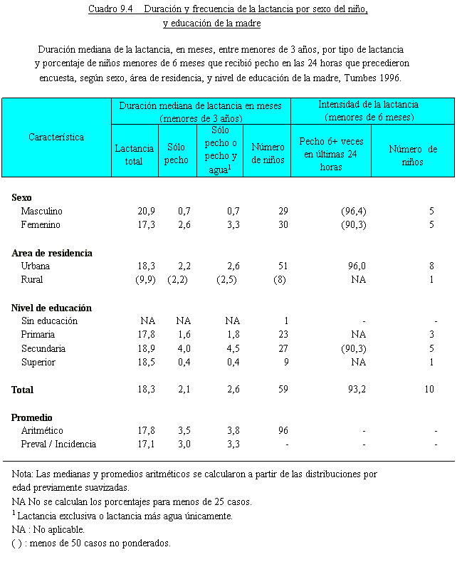 mediana de la lactancia y el porcentaje de menores de seis meses