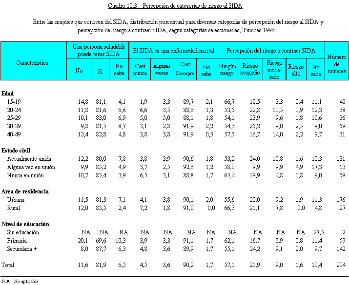 Percepción del riesgo a contraer el SIDA