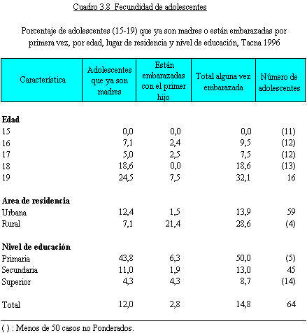 El Cuadro 3.8 contiene el porcentaje de adolescentes