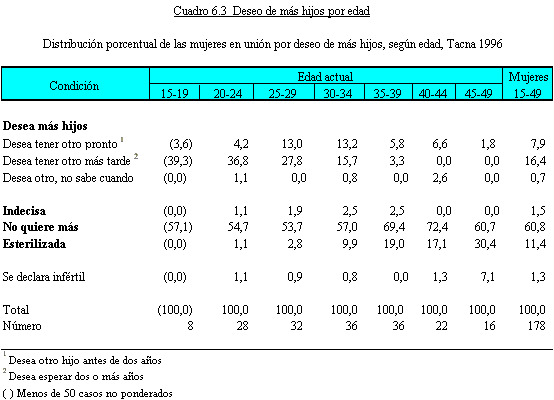 preguntado a aquellas mujeres que deseaban más hijos, cuánto