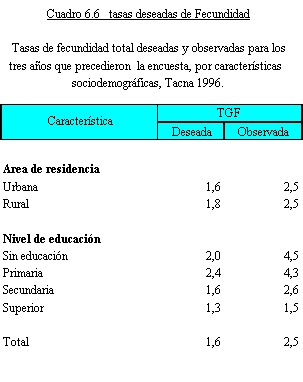 de Tacna sería de 1.6 hijos en promedio por mujer, si todos