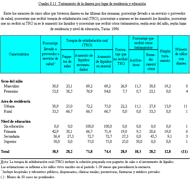 de los episodios de diarrea, el Cuadro 8.11 presenta, según