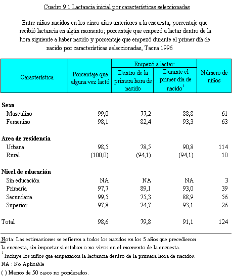 anteriores a la ENDES 1996, han lactado alguna vez. Este