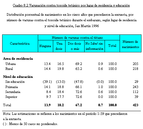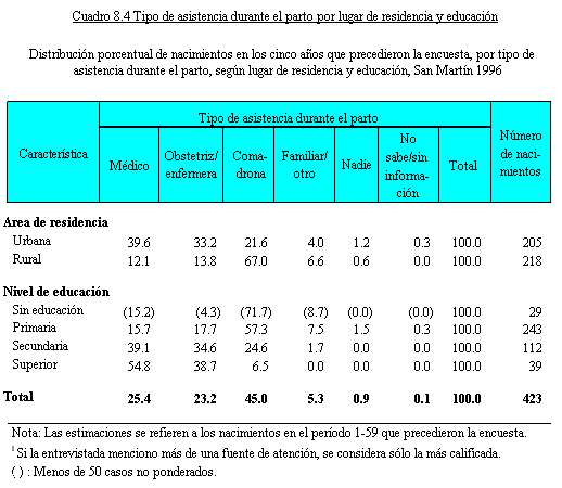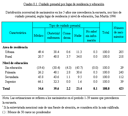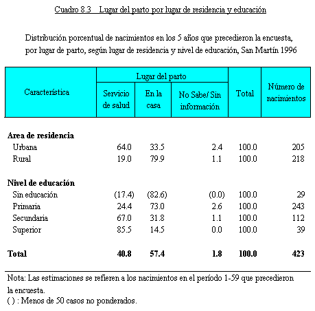 anteriores a la ENDES 1996 se resume en el Cuadro 8.3 por lugar