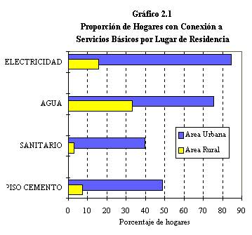 los hogares del área urbana (92 y 73 por ciento, respectivamente).