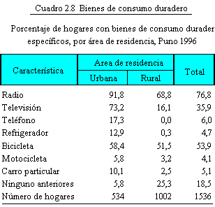 El Cuadro 2.8 contiene la proporción de hogares con la