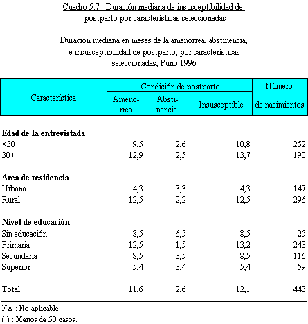 (12.5 meses). De otro lado, la duración mediana de la amenorrea