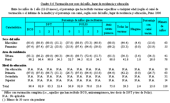 El Cuadro 8.6 presenta los niveles de vacunación