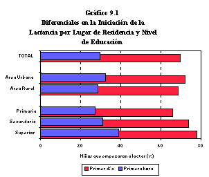 | 1 Incluye los niños que empezaron la lactancia dentro de la primera hora de nacidos.