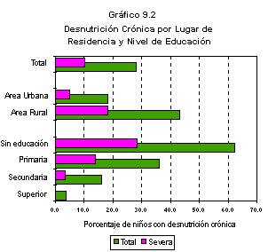Indicadores de desnutrición infantil por lugar de residencia y educación
