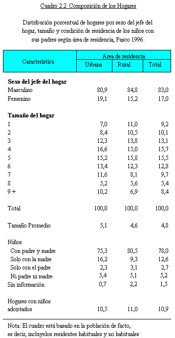 adopción y orfandad se detallan en el Cuadro 2.3.