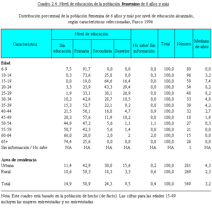 2.6). El cuadro presenta el porcentaje de la población