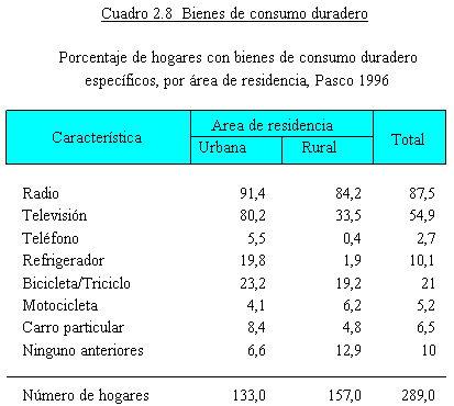 El Cuadro 2.8 contiene la proporción de hogares con la