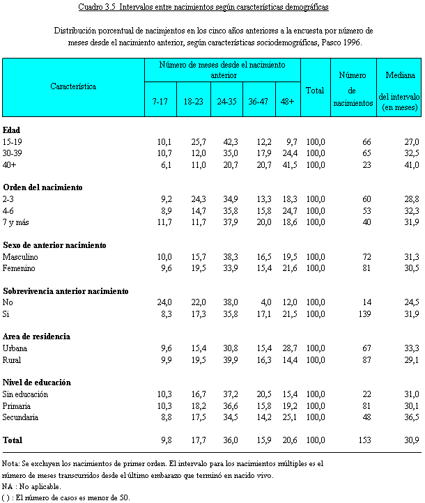 Intervalos entre nacimientos según características