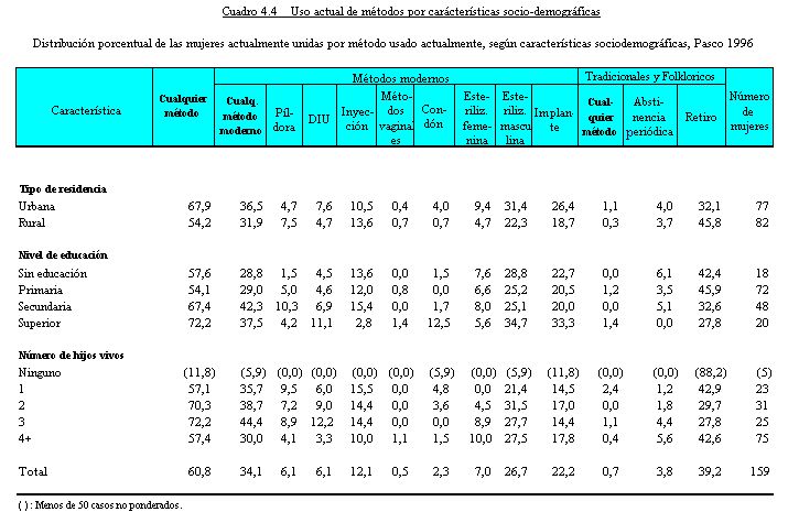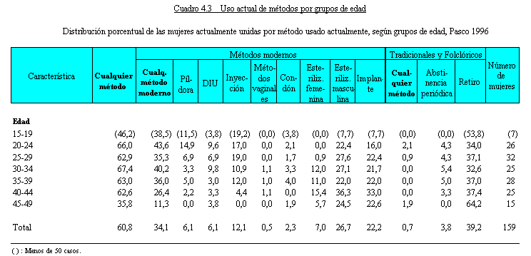 anticonceptivo. El 34 por ciento usan métodos modernos