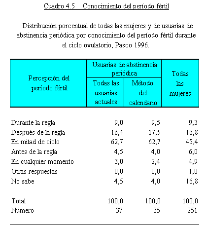 que existe mayor riesgo de quedar embarazada. En el Cuadro 4.5