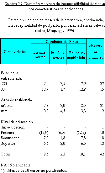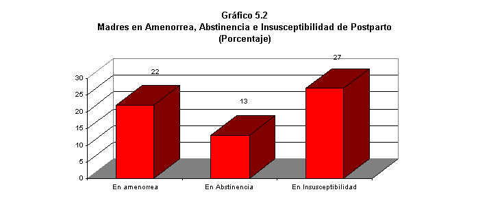 Con esta información es posible realizar estimaciones de la duración de la amenorrea, de la abstinencia postparto, y del período de no susceptibilidad al riesgo de embarazo, según el tiempo transcurrido, en meses, desde el nacimiento del último hijo.