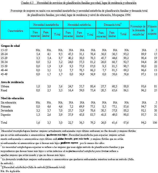 Las mujeres con necesidad insatisfecha de planificación familiar;