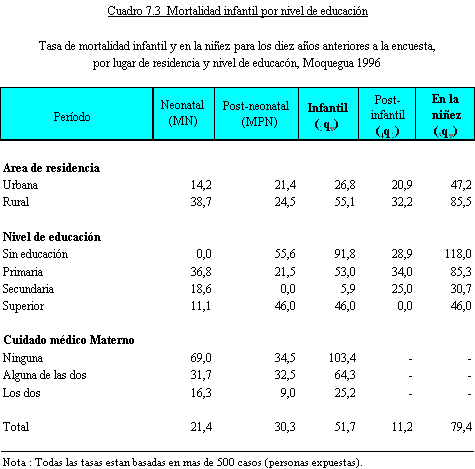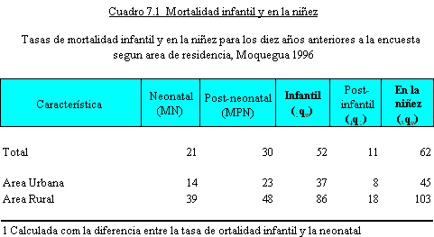 mortalidad infantil (98 por mil) mayor al de los niños
