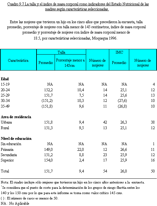 de Moquegua, madres con Indice de Masa Corporal por debajo de