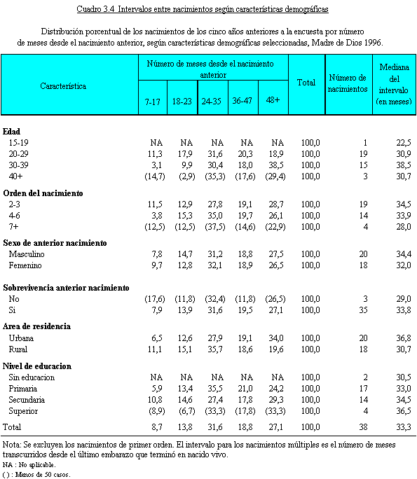 el 50 por ciento de los nacimientos es de 33 meses, la misma que