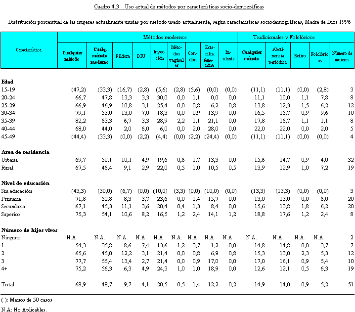 por ciento de las mujeres unidas son usuarias de ellos, respectivamente.