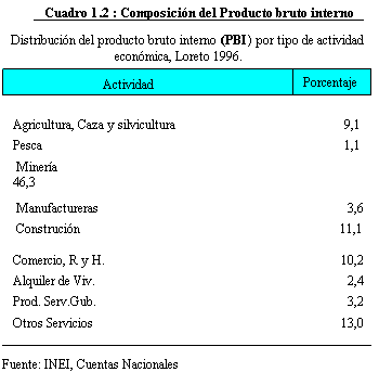 La economía loretana hacia 1996 presenta