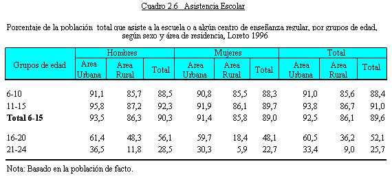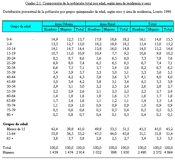 Loretana hacia el año 1996 (Véase el Cuadro 2.7