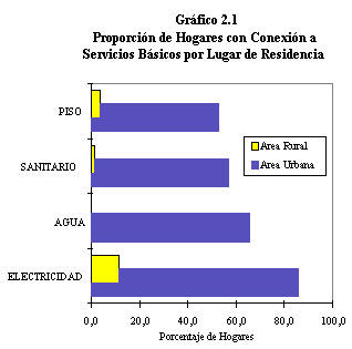los hogares del área urbana con 74% y 75%, respectivamente.
