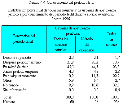 y el retiro. Para evaluar este conocimiento, en la ENDES 1996