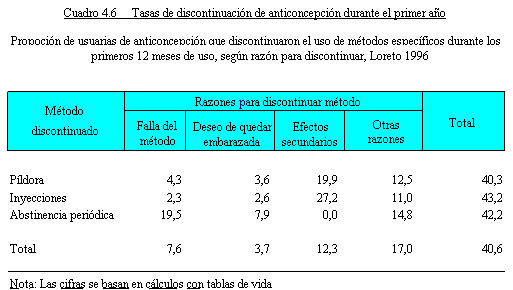 El Cuadro 4.6 muestra las tasas de discontinuación