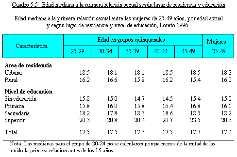 edad mediana a la primera relación sexual aumenta según