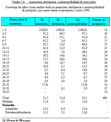 estimaciones de la duración de la amenorrea, de la abstinencia
