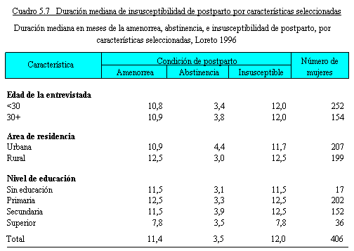 y la insusceptibilidad de postparto se presenta en el Cuadro 5.7