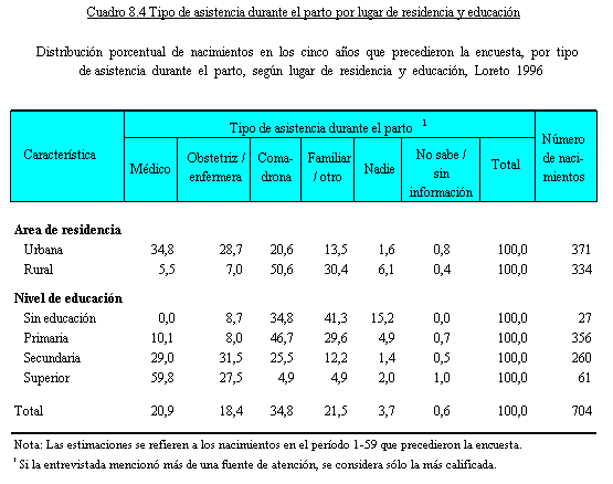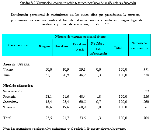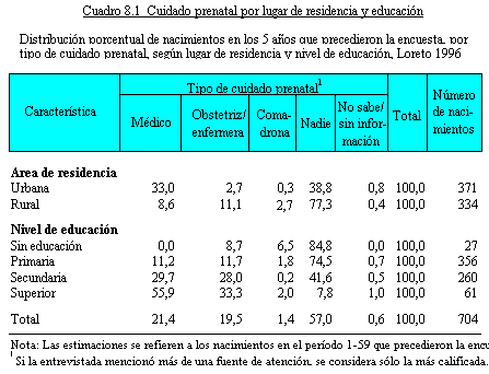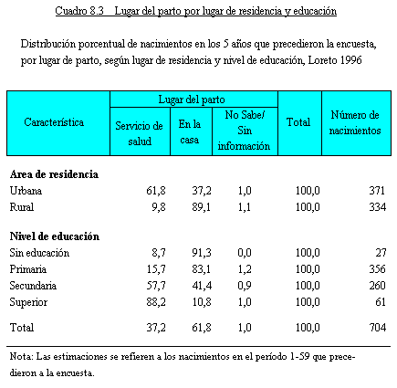 anteriores a la ENDES 1996 se resume en el Cuadro 8.3 por lugar