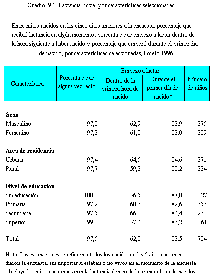 anteriores a la ENDES 1996, han lactado alguna vez. Este porcentaje