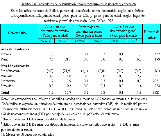 en el Cuadro 9.6 por lugar de residencia, nivel de educación.
