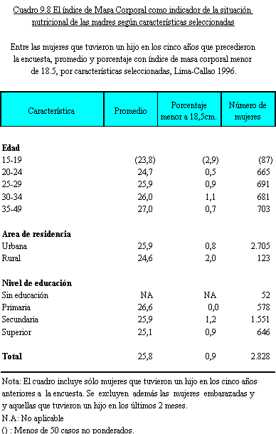 de masa corporal se presentan en el Cuadro 9.9 para características